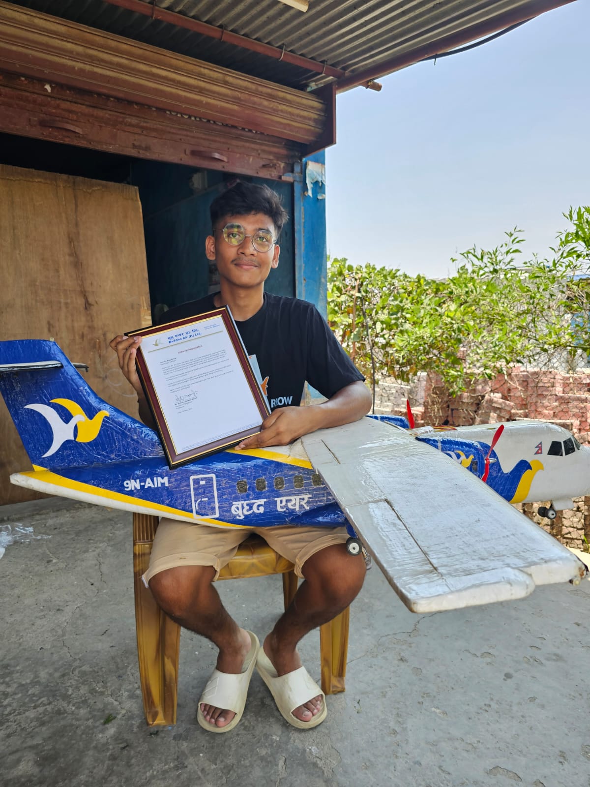 बुद्ध एयरले आफ्नो एटिआर ४२ जहाजको नमूना बनाएर आकाशमा उडाउने चितवनका अभय परियारलाई सम्मान गरेको छ।